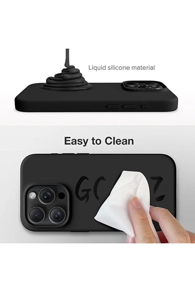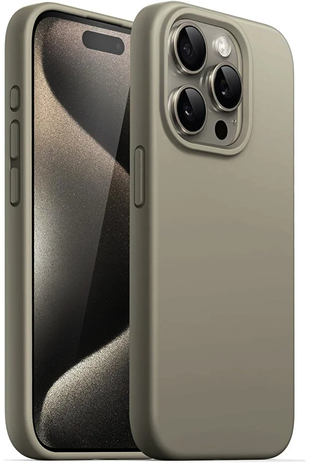 HyperAge لهاتف iPhone 15 Pro Max مخملي مع كاميرا داخلية مرتفعة، غطاء سيليكون باللون الرمادي التيتانيوم