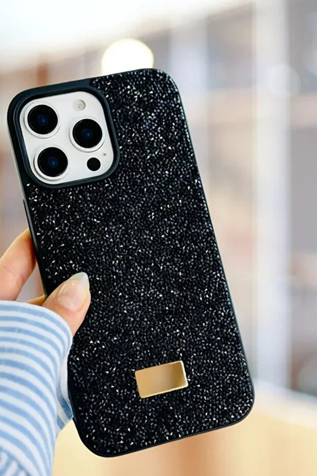 KVK PRIVACY متوافق مع iPhone 13 Pro Max - تصميم ماسي، حجر أسود، غطاء سيليكون ماسي لامع