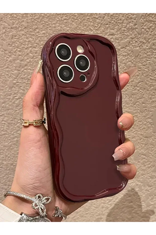 KVK PRIVACY متوافق مع iPhone 13 Pro Max، غطاء سيليكون ناعم مقاوم للصدمات بحافة مموجة، لون أحمر كلاريت