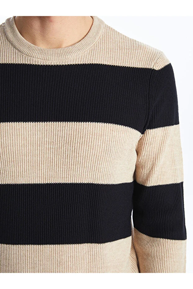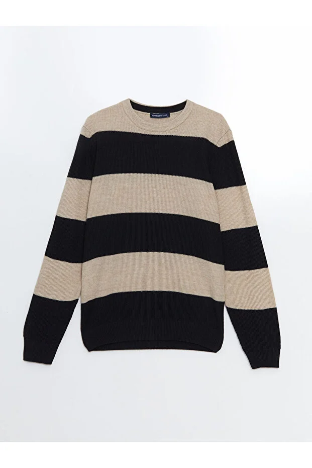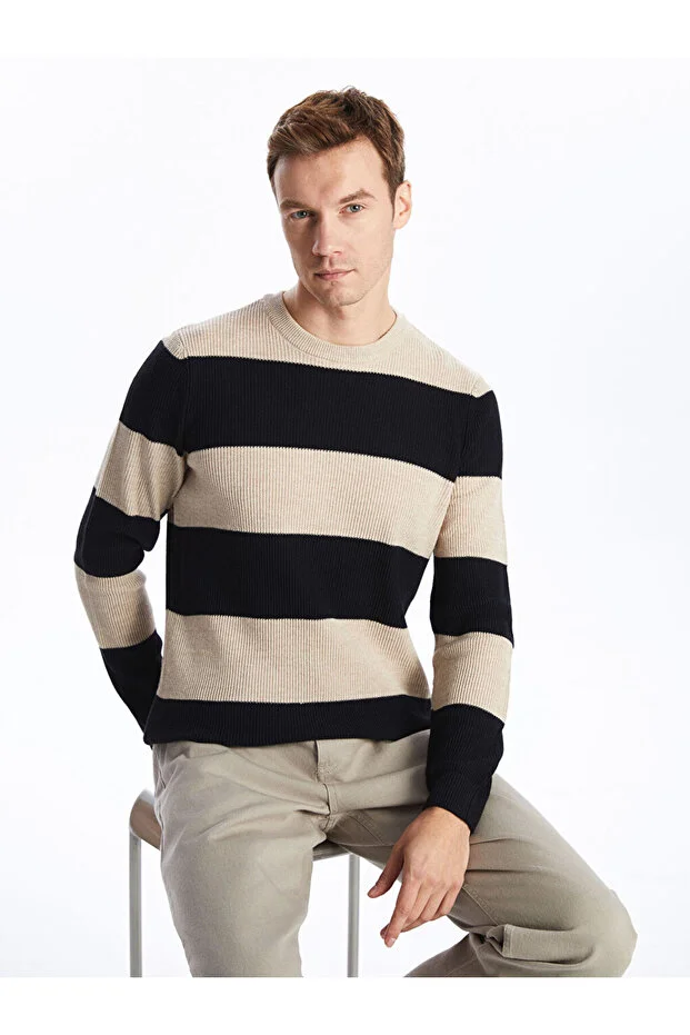 سترة رجالية محبوكة من LC Waikiki، أزرق داكن، بياقة دائرية وأكمام طويلة، بألوان متعددة