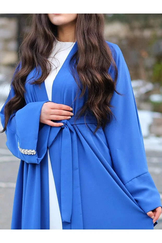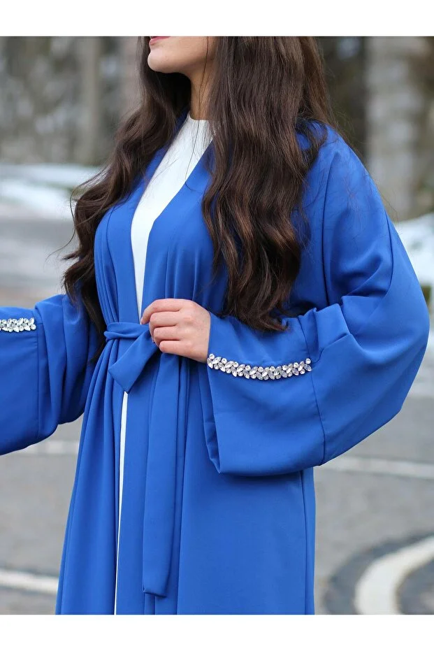 0 Review Of Product MELEK ARAZ Saxe Blue Abaya with Stoned Sleeves
