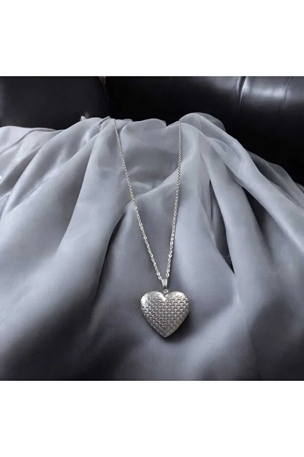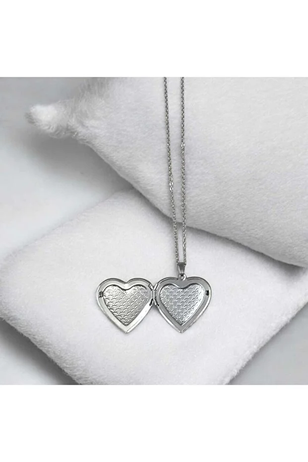 0 Review Of Product NAS fashion قلادة تذكارية عائلية مزدوجة من الفولاذ مع غطاء قابل للفتح لوضع الصور على شكل قلب