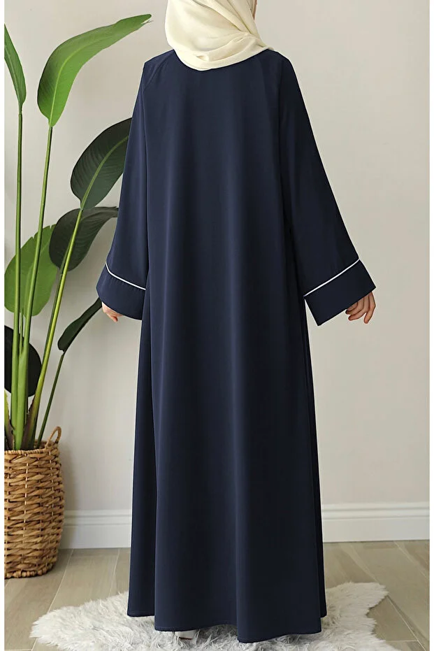 Suhneva Ahu Piping Abaya Navy Blue