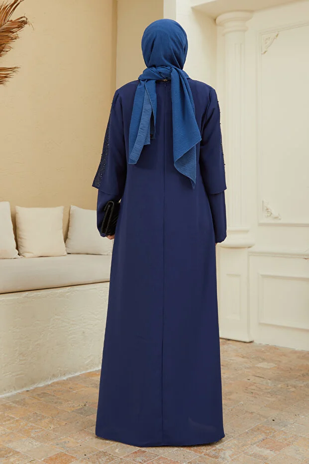 VAVİNOR Hürrem Plus Size Evening Dress - Indigo
