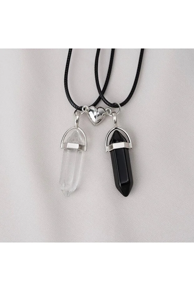 Zuum قطعتين من الحجر الطبيعي الشفاف والأسود على شكل قلب مع تفاصيل مغناطيسية، قلادة من الخيط، قلادة الصداقة، الأصدقاء الأعزاء