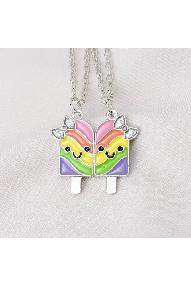 Zuum قلادة بسلسلة مغناطيسية ملونة بتفاصيل على شكل آيس كريم، قلادة للصداقة، أفضل الأصدقاء